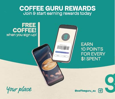 Sign up to Coffee Guru Loyalty Program to receive a FREE small coffee and instantly unlock exclusive benefits and rewards. Earn 10 points per every $1 spent.